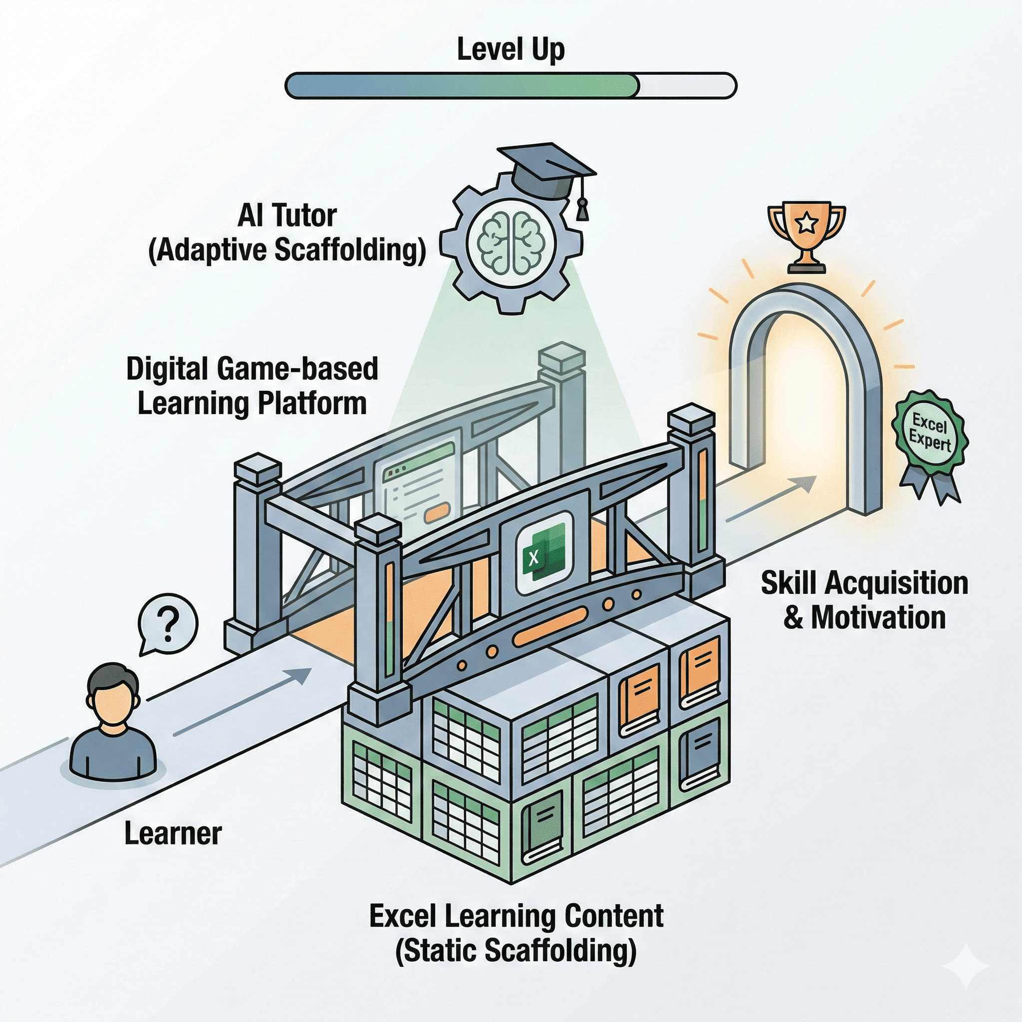 Integrating AI Tutors in Game-Based Learning to Enhance Excel Education國際研討會論文本研究開發了一款結合生成式 AI 的數位學習遊戲。系統採用「鷹架理論」,整合了作為適應性鷹架的 AI 導師與固定學習內容,降低認知負荷並提升學習動機。研究將透過實驗,比較在遊戲式學習中整合 GenAI 與否,對學生學習成效與動機的影響。https://ieeexplore.ieee.org/abstract/document/11208010Gemini_Generated_Image_gwtd4ngwtd4ngwtd.png